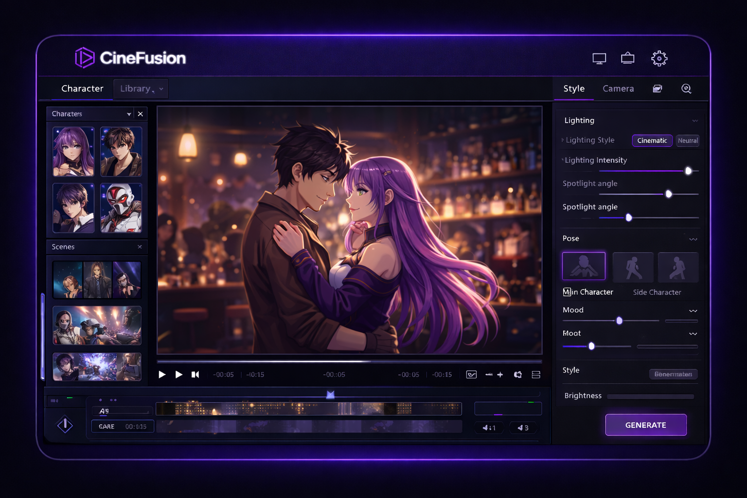 Create your anime with cinematic scenes and creator tools.